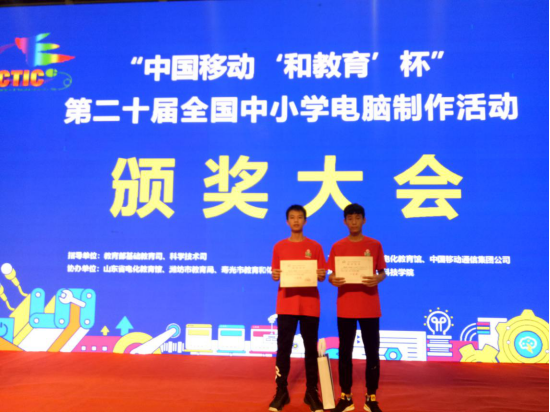 2019年7月17日至21日,由中華人民共和國教育部基礎教育司、科學技術司指導,中央電化教育館主辦的第二十屆“中國移動‘和教育’杯” 全國中小學電腦制作比賽在濰坊科技學院舉行。經過緊張激烈的角逐,我校代表隊獲得全國機器人籃球比賽初中組冠軍。