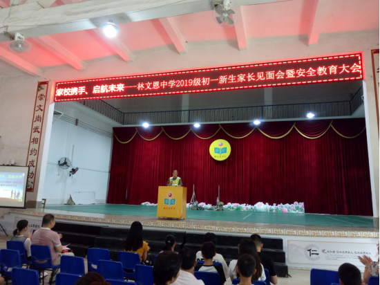 七月二十八日,透藍(lán)的天空,艷陽高照。林文恩中學(xué)禮堂人潮踴踴,2019級新生、家長濟(jì)濟(jì)一堂,相聚共商教育大計(jì)。