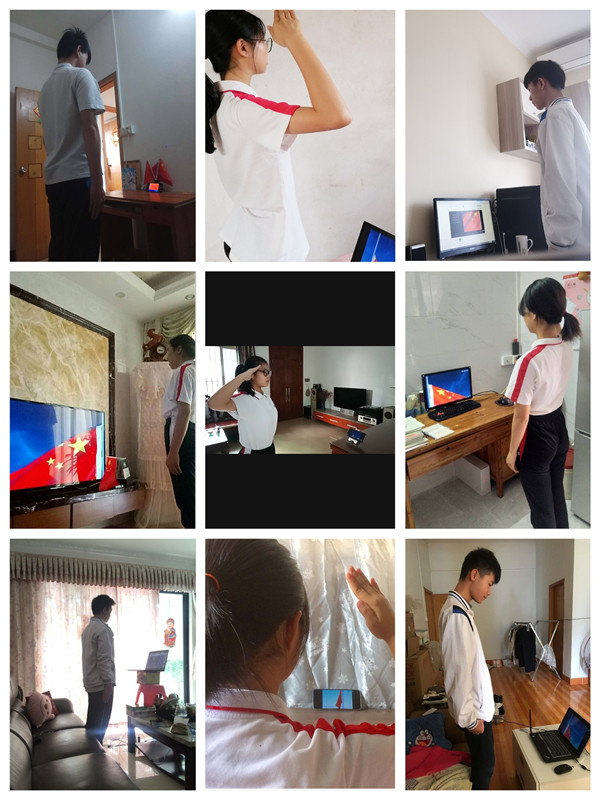 隨著國歌響起,鮮艷的五星紅旗冉冉升起,學(xué)校全體行政在學(xué)校,全體同學(xué)在家中整齊肅立,注視著國旗,唱響國歌。這是一場特殊的升旗儀式,更是一場特別的“開學(xué)典禮”。