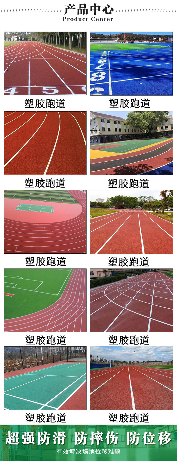 塑膠跑道又稱全天候田徑運(yùn)動跑道,它由聚氨酯預(yù)聚體、混合聚醚、廢輪胎橡膠、EPDM橡膠?;騊U顆粒、顏料、助劑、填料組成。塑膠跑道具有平整度好、抗壓強(qiáng)度高、硬度彈性適當(dāng)、物理性能的特性,有利于運(yùn)動員速度和技術(shù)的發(fā)揮,有效地運(yùn)動成績,摔傷率。塑膠跑道是由聚氨酯橡膠等材料組成的,具有一定的彈性和色彩,具有一定的抗紫外線能力和耐老化力是公認(rèn)的全天候室外運(yùn)動場地坪材料。
