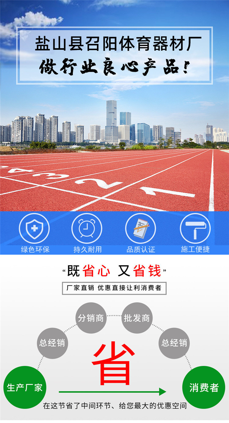 性能穩(wěn)定的特性,有利于運(yùn)動(dòng)員速度和技術(shù)的發(fā)揮,有效地提高運(yùn)動(dòng)成績(jī),降低摔傷率。塑膠跑