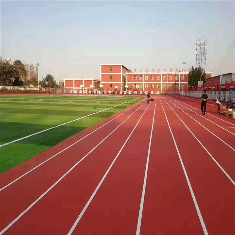 PU顆粒、顏料、助劑、填料組成。塑膠跑道具有平整度好、抗壓強(qiáng)度高、硬度彈性適當(dāng)、物理性