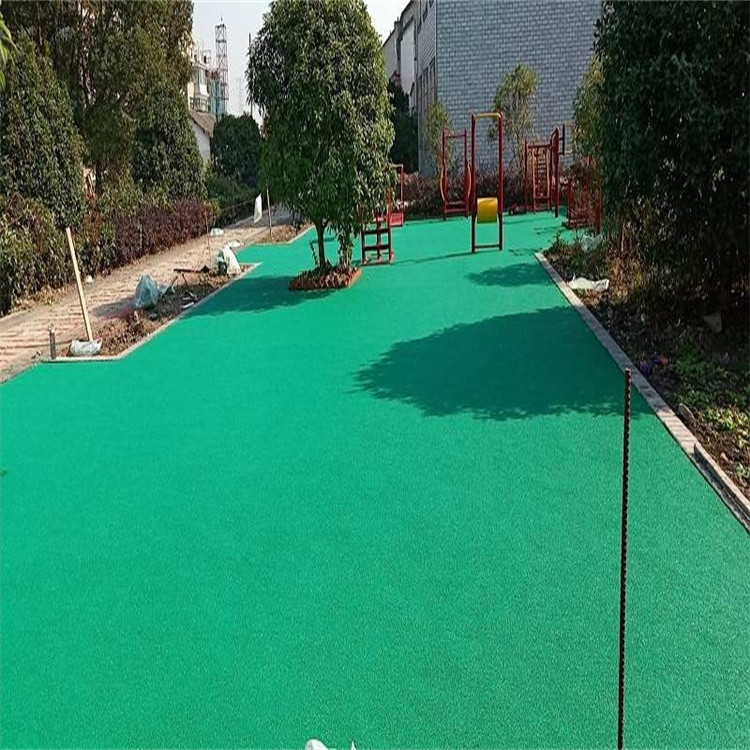 將甲:乙比例為1:4和EPDM顆粒(2-3mm)混合配比料運(yùn)至推鋪現(xiàn)場(chǎng)下料后即開始攤鋪