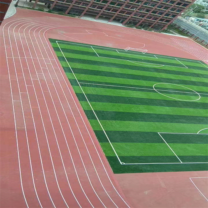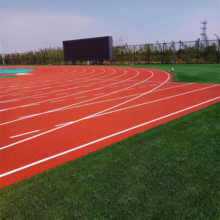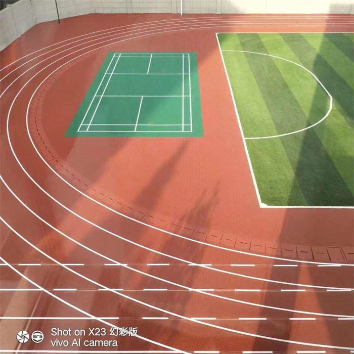混合型塑膠跑道是由雙組分聚氨酯膠與黑色橡膠顆粒兩種的塑膠底層組成一種新型高分子合成材料,現(xiàn)已被認(rèn)為是目前體育運(yùn)動(dòng)場(chǎng)地使用材料,它具有強(qiáng)度高、彈性好、吸震性能好、耐磨、耐氣候老懷、防滑、平整和色彩美觀的特點(diǎn)。同時(shí)場(chǎng)地易于清潔和維修管理,不受氣候條件的影響。美觀、鮮艷、平坦,使運(yùn)動(dòng)員具有舒適感,振奮精神,提高水平。