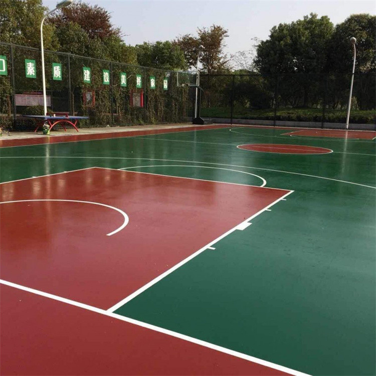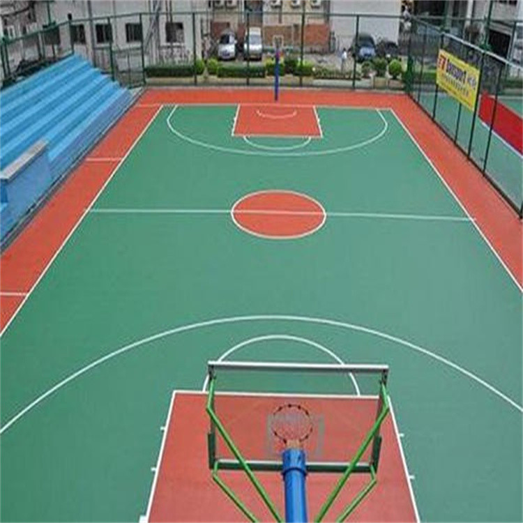 6. 平整度校檢找平:為保證整個(gè)場地鋪裝平整,厚度均勻,施工前用自來水對(duì)整個(gè)場地進(jìn)行澆水,澆水要全面徹底,且要采用慢注漫流、嚴(yán)禁強(qiáng)沖,待積水處理干后,凹陷積水之處用筆做好記號(hào),用混合底料補(bǔ)平,直到將整個(gè)場地凹陷處補(bǔ)平,沒有積水現(xiàn)象為止。