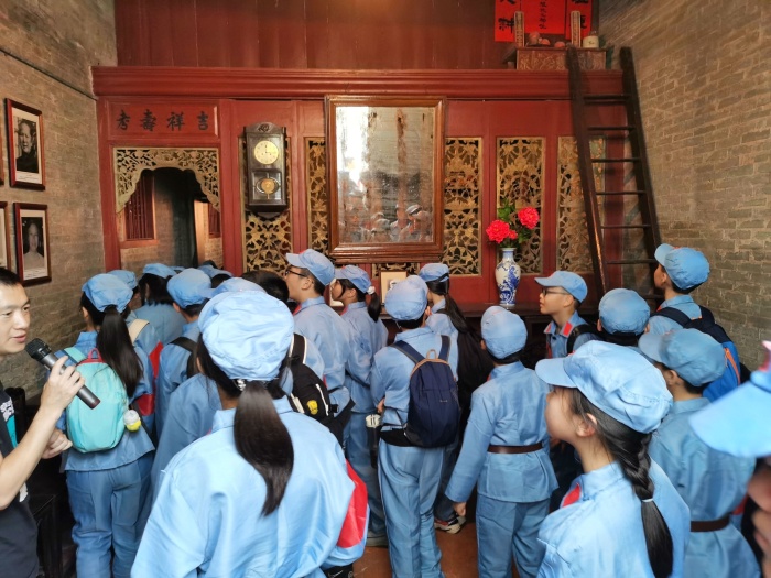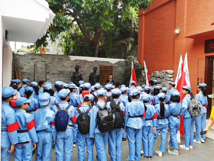 4月25日,天公作美,風和日麗、碧空如洗。中山火炬高技術(shù)產(chǎn)業(yè)開發(fā)區(qū)第一小學六年級(4)班在家委的精心組織下,全班51個親子家庭齊聚一堂,出發(fā)前往中山沙溪鎮(zhèn)明亭村參觀申明亭革命史跡館和揚子江故居,開展以“踏尋紅色足跡,共慶建黨100周年”為主題的親子研學活動。