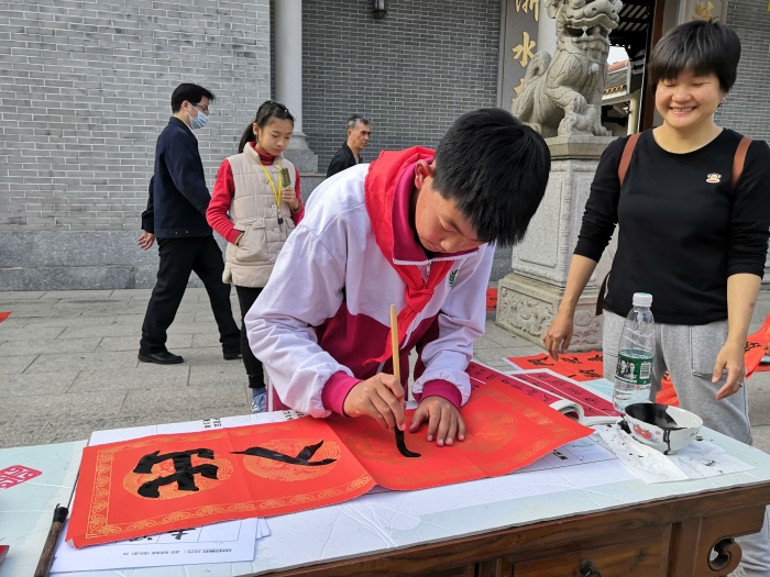 1月28日下午,李堆威、丘志偉兩位老師帶領(lǐng)著開發(fā)區(qū)第一小學(xué)書法社團(tuán)的學(xué)生參加了由火炬區(qū)書法中心教研組與濠頭聯(lián)富社區(qū)聯(lián)合舉行的“迎新春送春聯(lián)”活動(dòng)。當(dāng)天活動(dòng)現(xiàn)場(chǎng)處處洋溢著濃濃的新年節(jié)日氛圍,開發(fā)區(qū)第一小學(xué)書法社團(tuán)的“小書法家”們自信大膽地展現(xiàn)了扎實(shí)的書法功底,得到了社區(qū)居民一致稱贊。短短的2個(gè)小時(shí),開發(fā)區(qū)第一小學(xué)的“小書法家”們書寫了近百幅春聯(lián),將這些春聯(lián)凝結(jié)成一份份美好的祝福,真摯地送給社區(qū)居民。
