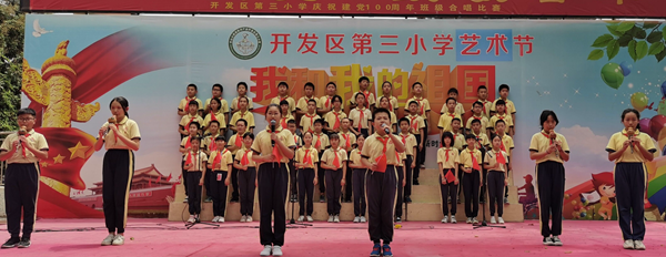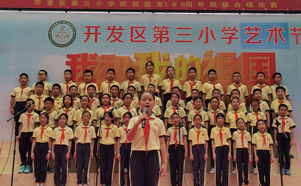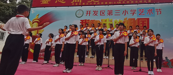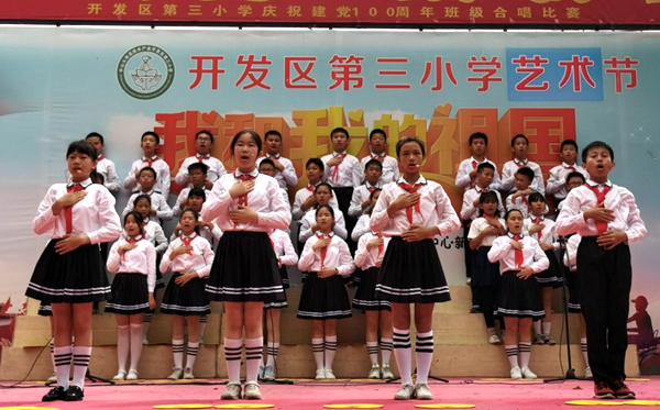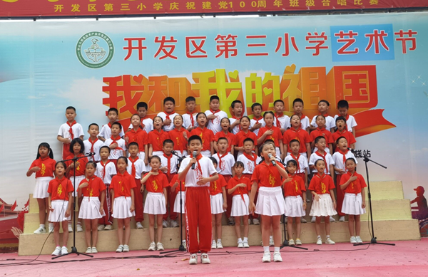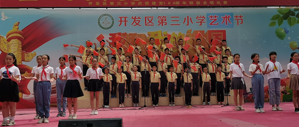 為慶祝中國共產(chǎn)黨建黨100周年,進一步加強小學(xué)生思想道德建設(shè),踐行社會主義核心價值觀,激發(fā)學(xué)生愛黨、愛國的熱情,聽黨的話,跟黨走?;鹁骈_發(fā)區(qū)第三小學(xué)于5月31日上午,在校園的鳳凰臺舉行了“童心向黨 喜迎百年”合唱比賽。