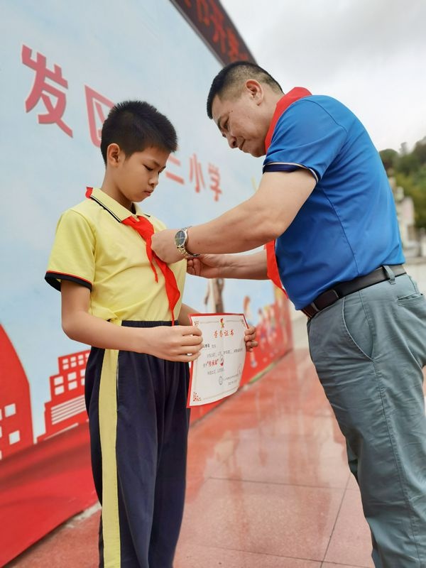 儀式上,三小黨支部書記、少工委主任劉光旗校長對(duì)隊(duì)員們提出了殷切希望:希望輔導(dǎo)員積極開展豐富多彩的紅領(lǐng)巾爭章活動(dòng)。爭章的過程就是挑戰(zhàn)自我的過程,隊(duì)員們?cè)跔幷碌幕顒?dòng)過程中,不僅學(xué)會(huì)了一種技能,一種方法,提高了各種能力,更重要的是增加了一份自信。希望每位隊(duì)員積極參加有意義且有意思的爭章活動(dòng),在廣闊舞臺(tái)中增長才干、鍛煉能力,爭做新時(shí)代好少年。現(xiàn)場劉校長還為獲得中山市“傳承章“的隊(duì)員進(jìn)行了頒章。