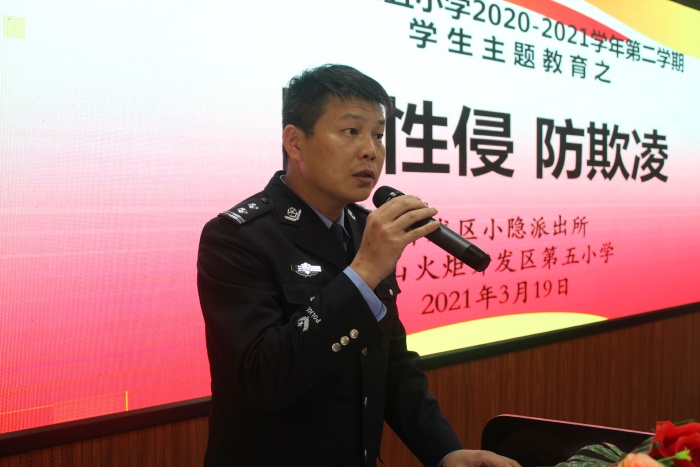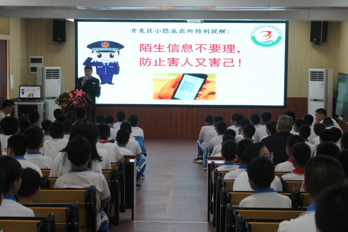 活動開始以胡冬梅校長為小隱派出所余冬茂副所長、黃偉權警員分別頒發(fā)“法制副校長”、“校園民警”聘書拉開序幕。法制副校長余冬茂所長為學生進行安全教育的主題講座,余所長分別從信息詐騙、毒品犯罪、防性侵、校園欺凌以及什么是犯罪、如何防范等方面對學生進行了專門講解。余所長用一個個鮮活的事例,提醒學生一定要提高警惕,學會自我保護,不要輕信陌生人,不吃陌生人的飲料和食品。內衣所及之處都隱私部位,任何人提出對這些部位的身體接觸,都要斷然拒絕;對于陌生人或熟人自己認為不舒服的其他部位的身體接觸,要勇敢地說“不”。關于校園欺凌要人要做到不他人,也要防人欺,同學之間友好相處、文明相處。