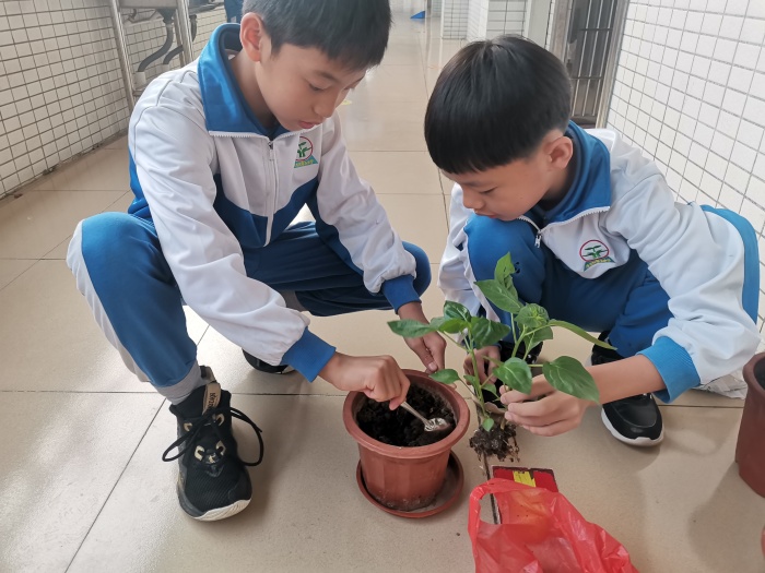 校園內,各中隊在教室里開辟出“綠意角”,用來放置綠色小植物。綠意角一出現(xiàn),同學們激動萬分,紛紛從家中帶來小植物,給綠植貼上標簽,還附上了植物的簡單介紹。在隊員們的巧手裝扮下,教室成了植物棲居的家園,生機盎然,綠意無限。