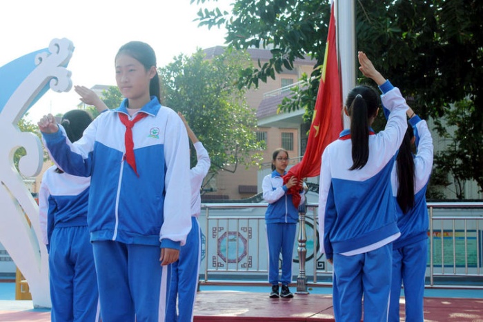 開(kāi)學(xué)典禮由三(2)中隊(duì)的羅心語(yǔ)同學(xué)主持,莊嚴(yán)的升旗儀式后,舉行了“新教師亮相”儀式,少先隊(duì)員們給本學(xué)期新進(jìn)校的崔洋副校長(zhǎng)、沈雪老師、蔡綿綿老師獻(xiàn)上了鮮花,新教師代表崔洋副校長(zhǎng)講話,她倡導(dǎo)同學(xué)們“做一個(gè)心懷美好夢(mèng)想的小行家”,“做一名心疼父母的好孩子”。