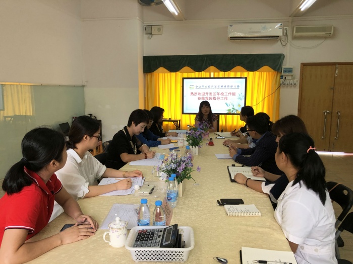 本次年檢,區(qū)教育事務指導中心制定了詳細的工作方案,從時間、對象、內容、方法上對今年的年檢工作作了具體的安排:由區(qū)教育事務指導中心幼教專干黃翠媛老師及區(qū)疾控中心負責人黃國賢醫(yī)生擔任年檢總指揮,檢查組成員由疾控中心醫(yī)生、等級幼兒園園長、骨干教師及幼兒園保健醫(yī)生等組成,共分6個組同時進行檢查。檢查組按照2019年度《中山市幼兒園年檢手冊》、《中山市托兒所年檢手冊》各項指標要求,對受檢托幼機構自2019年9月以來的辦學情況進行全面檢查,對各園所的辦園(所)條件、幼兒園(托兒所)管理、衛(wèi)生保健三大方面進行細致的評估督導,在園(所)半天的時間里,檢查組通過察看園所環(huán)境、室場設施,隨機觀察幼兒半天生活、查閱檔案資料、深入課堂聽課、與保教人員溝通等各種渠道收集信息,對幼兒園的年度辦學情況做出客觀的判斷,并記錄扣分依據,填寫詳盡的定性評價,最后通過反饋環(huán)節(jié)讓每一間受檢幼兒園明確今后努力的方向。