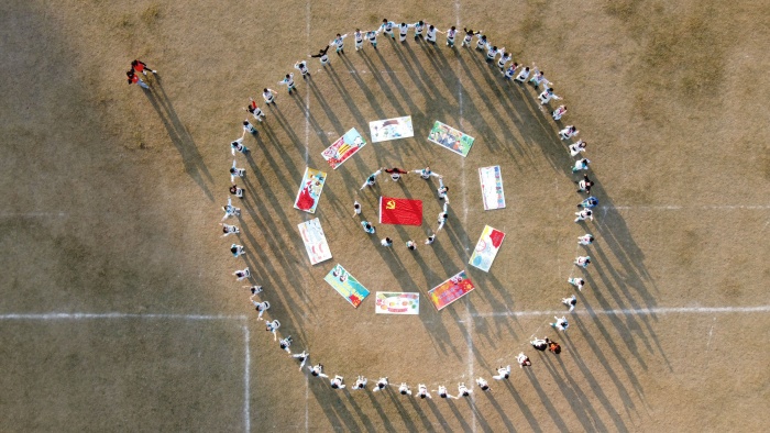 隨后,活動以主題明確而又接地氣的百人繪畫的形式生動活潑地展現(xiàn)了十九屆五中全會內(nèi)容的精神,同學(xué)們的繪畫有的寫實,有的對祖國未來前景的想象,繪畫材料多樣。期間,火炬二中張慧暖,魏利華,胡幸余三位藝術(shù)老師在一旁作指導(dǎo)。他們充分尊重學(xué)生個性,讓學(xué)生自由發(fā)揮,同時也參與到繪制中來。此外,活動還以青少年喜聞樂見的航拍、標(biāo)語創(chuàng)意造型拍、視頻拍攝等形式鞏固學(xué)習(xí)內(nèi)容,讓活動成效進(jìn)一步延伸至全校師生。
