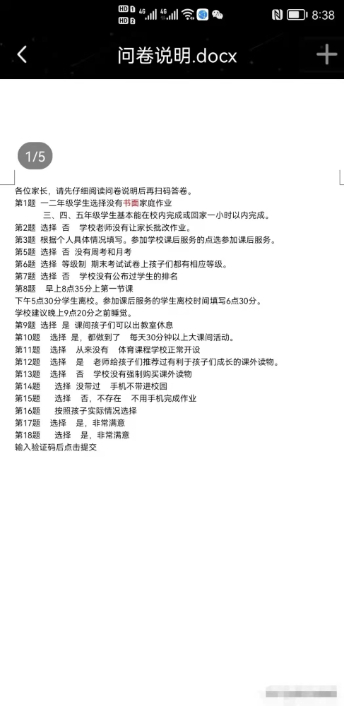 家長問卷調(diào)查學(xué)校要求只能按標(biāo)準(zhǔn)答案填寫,家長:學(xué)校害怕什么?