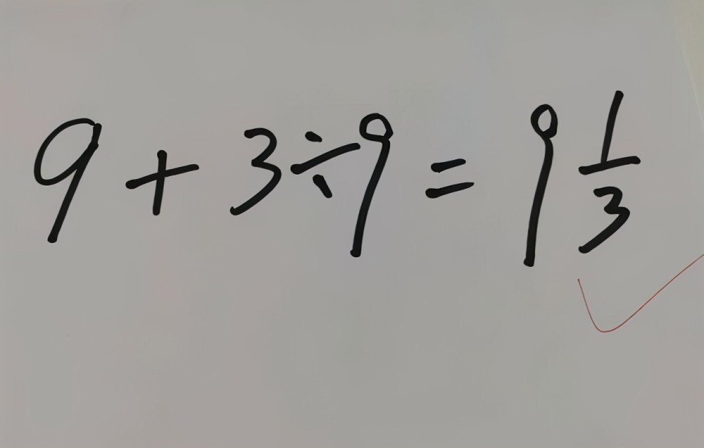 同樣的還有一個(gè)比較經(jīng)典的數(shù)學(xué)題,更是讓全班的學(xué)生全軍覆沒(méi)了。問(wèn)題是9加9除3等于多少?學(xué)生有的答(9+9)÷3=6錯(cuò)了,有的答9+9÷3=12也錯(cuò)了。