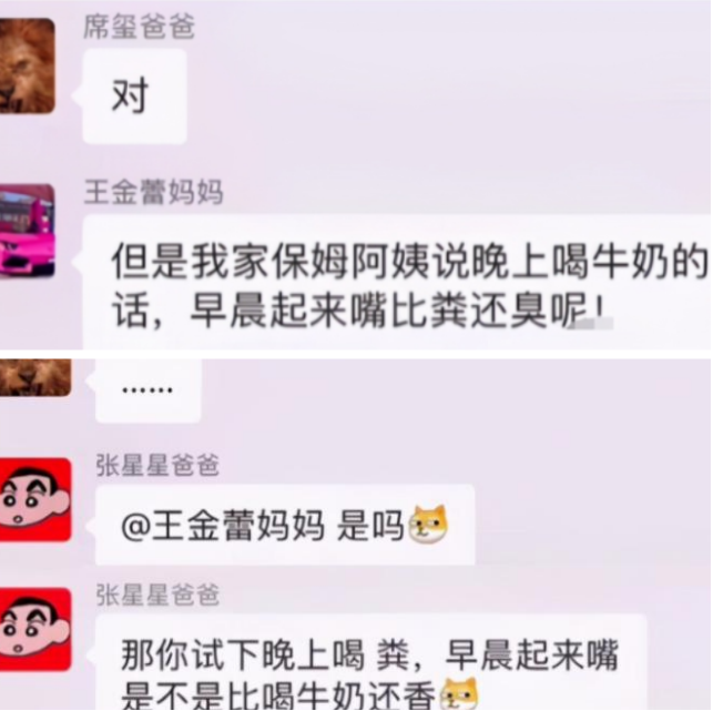 每個(gè)家庭的經(jīng)濟(jì)情況不同,家長(zhǎng)的教育水平也大相徑庭。因此,家長(zhǎng)平時(shí)在群里溝通的時(shí)候,經(jīng)常會(huì)出現(xiàn)大型的“社死現(xiàn)場(chǎng)”。尤其是遇到張星星爸爸,更是讓人下不來(lái)臺(tái)。這不,看到其他家長(zhǎng)說(shuō)保姆和牛奶,張星星爸爸回懟別人句句扎心,真是專治各種凡爾賽。