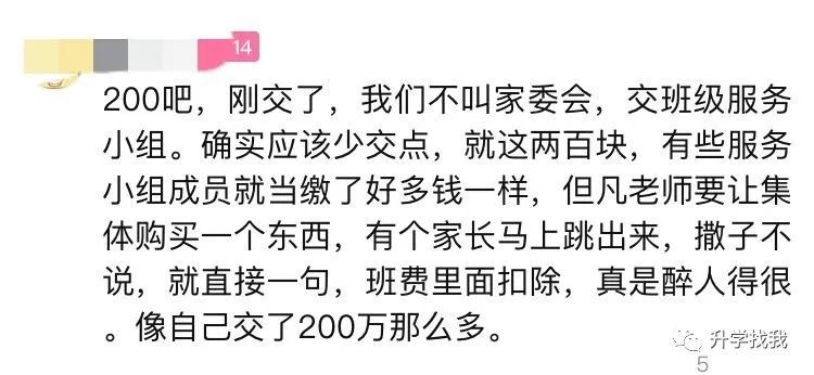 另一部分的“耿直”家長(zhǎng)則感嘆到:“不是有班費(fèi)嗎?”,“拿班費(fèi)直接完就完事了”,班費(fèi)就是給他們兜底的。若是又要交班費(fèi),那又會(huì)說(shuō):囊個(gè)嫩個(gè)快,不是才交了的邁.