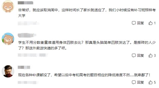 但是,國家之所以推行“雙減”政策,就是為了減輕中小學(xué)生的負(fù)擔(dān),現(xiàn)在校外培訓(xùn)機(jī)構(gòu)鉆國家政策的“空子”,在周中上課,這么做并不能為學(xué)生減負(fù),反而會加重學(xué)習(xí)負(fù)擔(dān)。