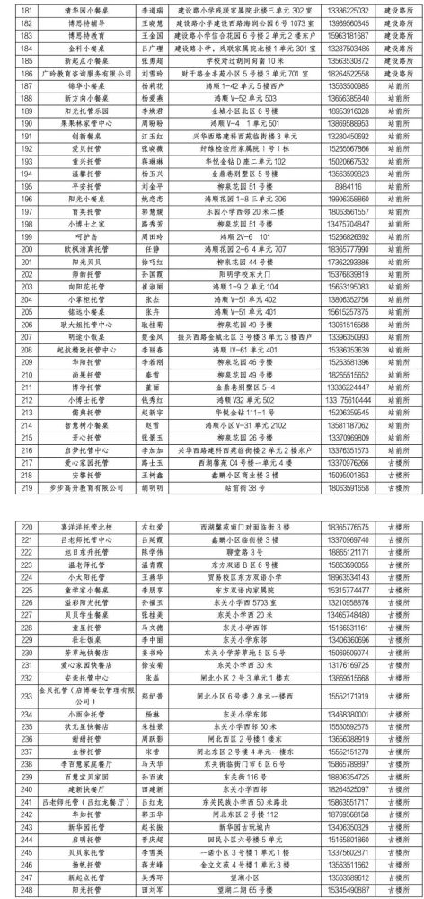 為進(jìn)一步規(guī)范校外托管機(jī)構(gòu)餐飲服務(wù)經(jīng)營行為,東昌府區(qū)市場監(jiān)督管理局對全區(qū)校外托管機(jī)構(gòu)進(jìn)行了全面的摸底調(diào)查,按照提升一批、規(guī)范一批、取締一批的工作原則,進(jìn)行了整治提升。經(jīng)過材料審查、現(xiàn)場核查,對符合條件的校外托管機(jī)構(gòu)進(jìn)行備案登記。截至目前,東昌府區(qū)共有345家校外托管機(jī)構(gòu)登記備案,現(xiàn)予以公示。