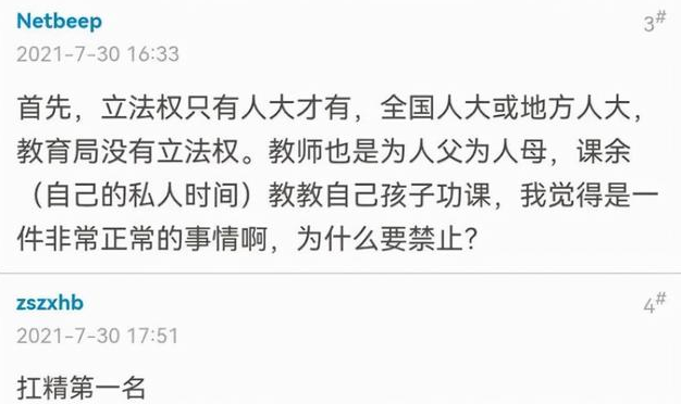 甚至還有家長表示,可以將這一提議立法,利用法律來限制教師為自家學(xué)生補習(xí)。但這一建議并沒有得到網(wǎng)友的認(rèn)同,教師也是父母,教自家學(xué)生功課也是正常的。