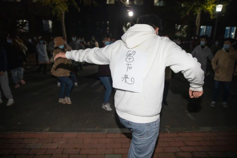 “一共有9個領舞的同學,有的在現場一邊編舞一邊跳,跳嗨了的時候,還有人自告奮勇上來領舞?!睆堦栨颊f,有了上周五的經驗后,11月13日,領舞的學生在自己后背貼上紙條,給大家做提示。
