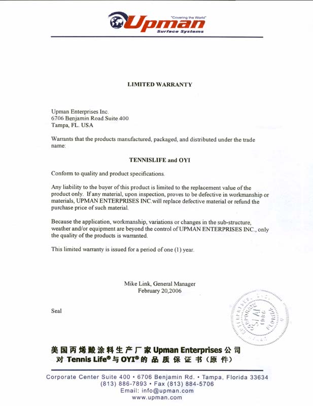 美國Tennislife?網(wǎng)球生涯品質(zhì)保證書產(chǎn)品介紹