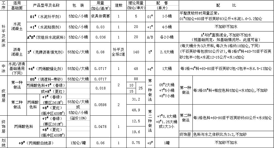 Tennislife?硬地網(wǎng)球場670M2/片標準用量及配比