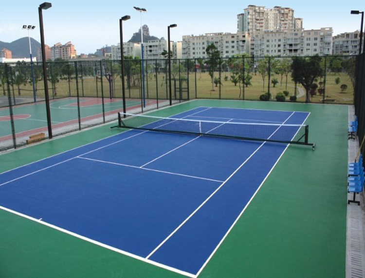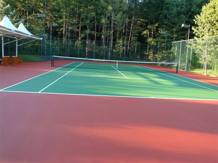 材料簡(jiǎn)介:丙烯酸樹脂球場(chǎng)(彈性丙烯酸網(wǎng)球場(chǎng),硬地丙烯酸網(wǎng)球場(chǎng))適用于專業(yè)選手比賽和訓(xùn)練使用,由100%純丙烯酸乳液加入進(jìn)口色料及助劑制成,完全符合環(huán)保要求,具有較好的耐磨性能,防水、防曬、防滑、可鋪設(shè)于室內(nèi)外瀝青或水泥面上??梢勒占由凹八呐浔日{(diào)整表面糙度。中級(jí)性能產(chǎn)品。