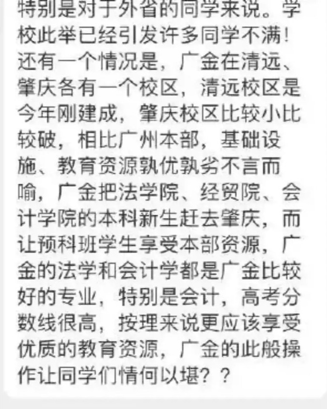 學(xué)校這樣的做法,真的本科生們心寒。最讓人氣憤的是,當(dāng)本部的學(xué)生將這些情況曝光之后,學(xué)校還花錢壓熱搜,這就引發(fā)了廣金學(xué)子的暴怒。