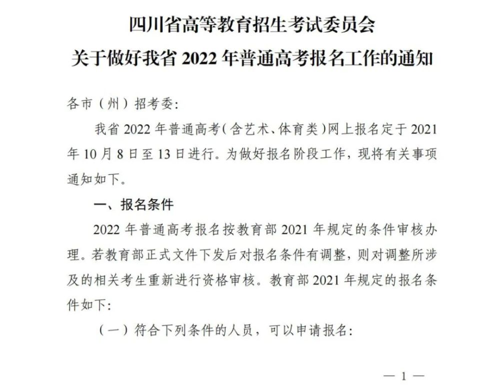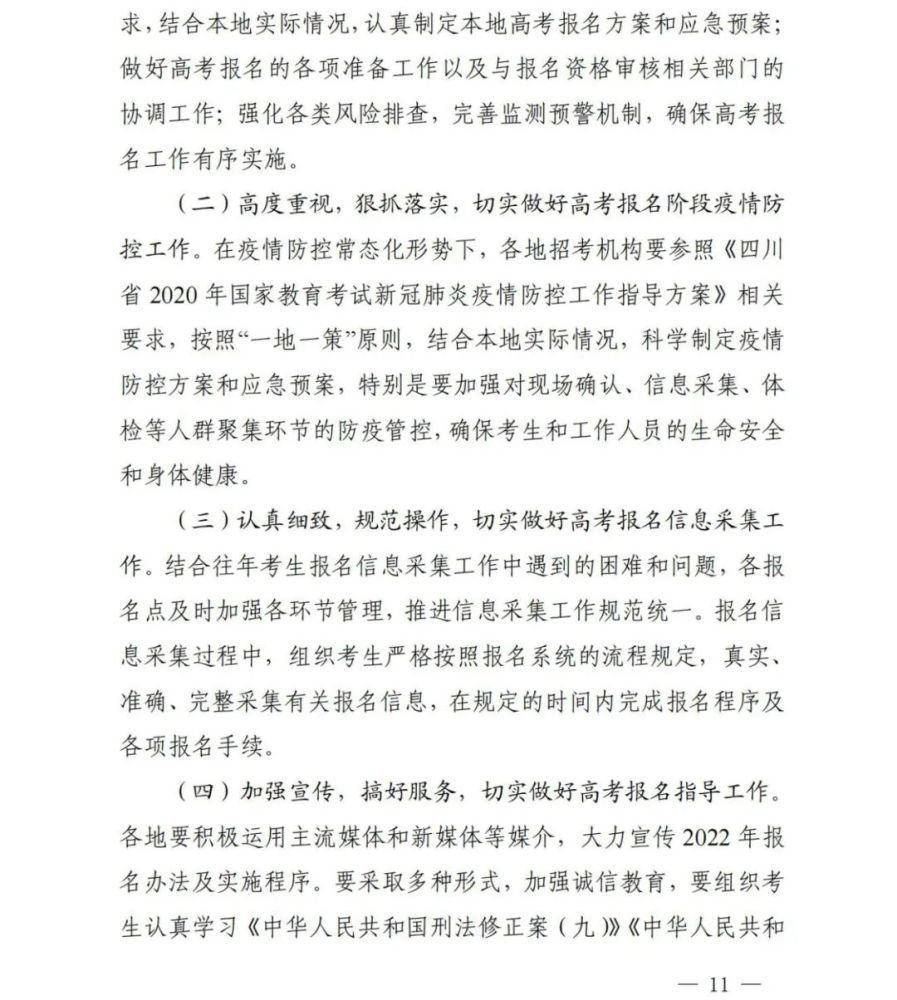 關(guān)于做好四川省2022年普通高考報名工作的通知