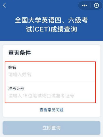 5、輸入查詢條件,點擊立即查詢就可以查詢英語四六級成績了。
