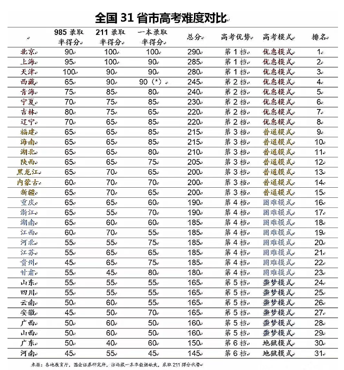各省高考難度“等級(jí)表”出爐,你所在的省市原來(lái)這么難考