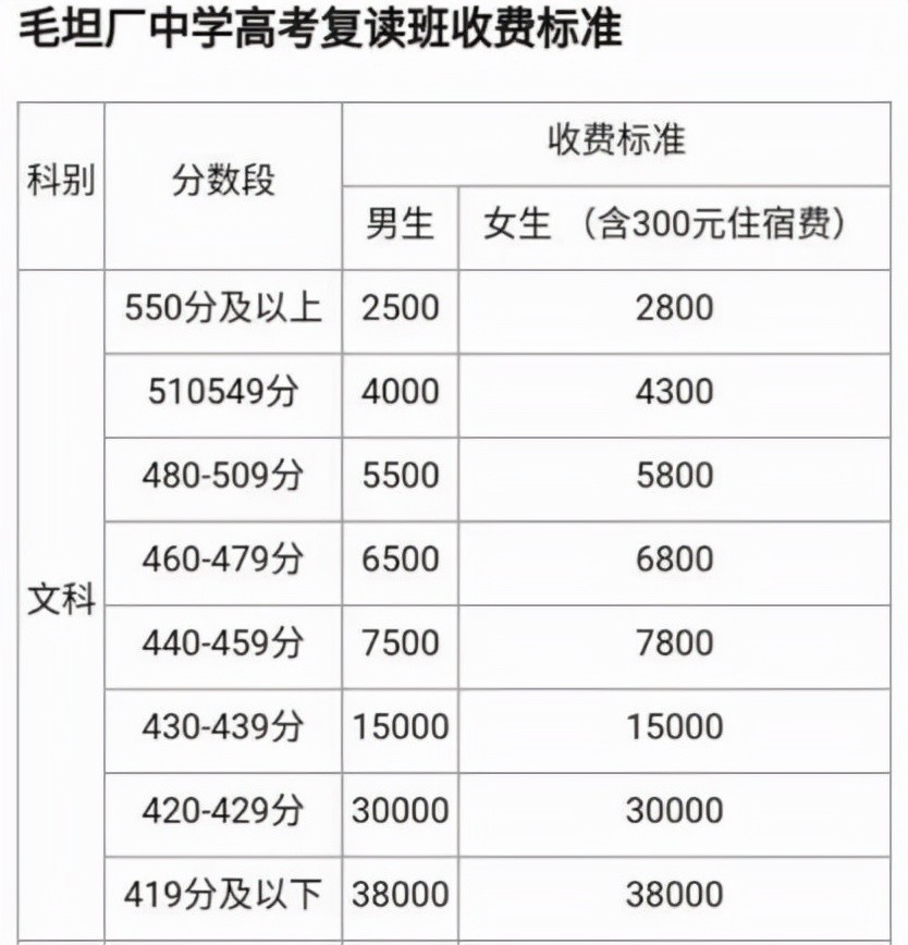 毛坦廠補習(xí)學(xué)校收費,每學(xué)年從2800元至38000元不等。15000元、30000元、38000元,對于普通家庭來說,是很大一筆開支。不容易啊!