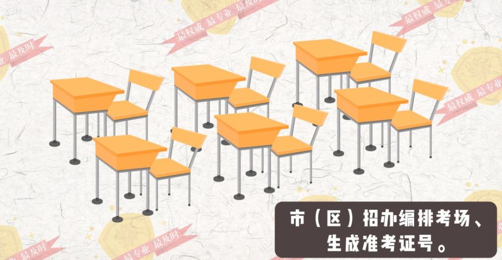 市(區(qū))招辦編排考場(chǎng)、生成準(zhǔn)考證號(hào)。