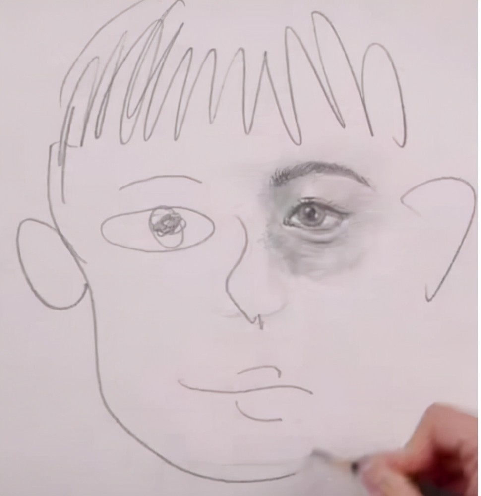 于是,作品中,眼睛部分雖然不算精致,卻也看得過去。而鼻子與嘴巴線條可謂極其潦草,讓人看都不忍看。閱卷老師看到這幅作品時,唯一的點評就是:不忍直視!