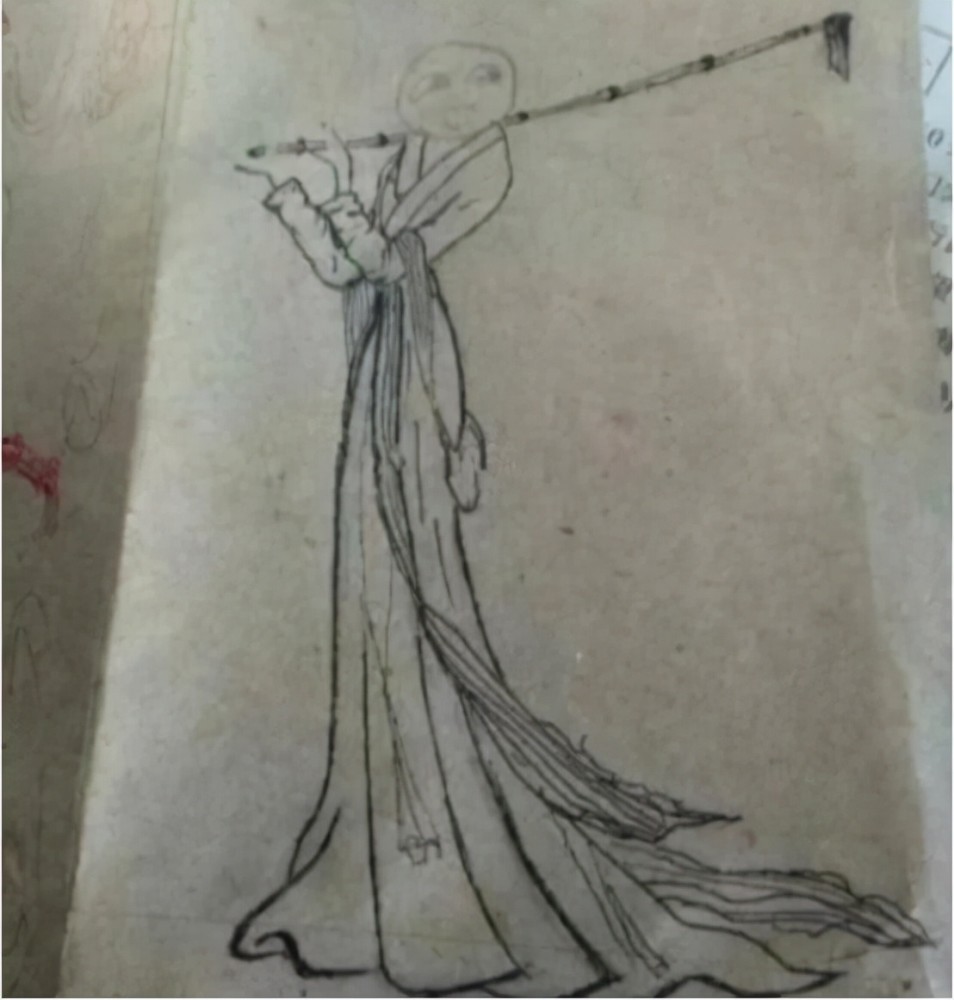這位美術生在隨堂小考時想要畫一個扛著鋤頭、悠閑自得、身段優(yōu)美的農家女子。很明顯,這位學生最開始描的是,這位女子的身段與衣服。最用心畫的衣服與身體顯得格外地優(yōu)美動人。