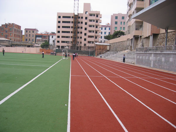 b、安全性:混合型塑膠跑道采用高彈性EPDM和PU顆粒,表面柔和,不刺眼,預防跌倒所發(fā)生的運動傷害。