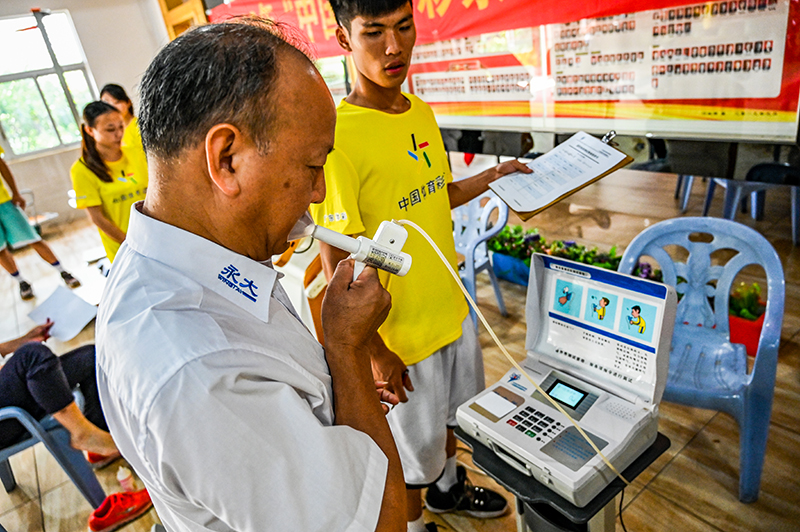 小欖鎮(zhèn)建斌中學(xué)職業(yè)技術(shù)學(xué)院學(xué)生韋龍騰以志愿者的身份參與了本站活動(dòng)的組織工作,他認(rèn)為除了緊張的籌備工作,這更是一次深入學(xué)習(xí)國(guó)民體質(zhì)監(jiān)測(cè)的過(guò)程,“以前曾經(jīng)接觸過(guò)簡(jiǎn)單的體測(cè)項(xiàng)目,但缺乏系統(tǒng)了解。這次能參與其中,學(xué)到了很多,例如骨密度、身體成分檢測(cè)等等,也為我專業(yè)體育訓(xùn)練提供了科學(xué)指引”,韋龍騰告訴記者。