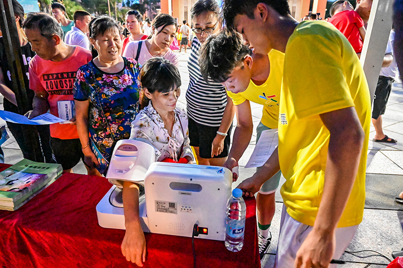 “您的心肺指標(biāo)一切正常,我們會(huì)給您開(kāi)出合適的運(yùn)動(dòng)處方”,現(xiàn)場(chǎng)體測(cè)服務(wù)人員耐心地解答了永大集團(tuán)員工林炯枝的疑惑,日常有徒步愛(ài)好的他非常希望獲得科學(xué)健身知識(shí)以及合理鍛煉指導(dǎo)?!耙郧耙?yàn)閰⑴c登山運(yùn)動(dòng)過(guò)于頻繁,把自己膝蓋弄傷了,通過(guò)這次活動(dòng)了解很多日常鍛煉需要注意的地方”,林炯枝告訴記者,他已經(jīng)第二次參加當(dāng)?shù)嘏e行體測(cè)活動(dòng),與三年前第一次參加體測(cè)相比,這次由省國(guó)民體質(zhì)監(jiān)測(cè)中心組織的體測(cè)項(xiàng)目更加全面,“印象最深的是測(cè)精神壓力項(xiàng)目,對(duì)于我這樣久坐辦公、工作壓力大的員工來(lái)說(shuō),這個(gè)項(xiàng)目太有幫助了”, 林炯枝說(shuō)道。