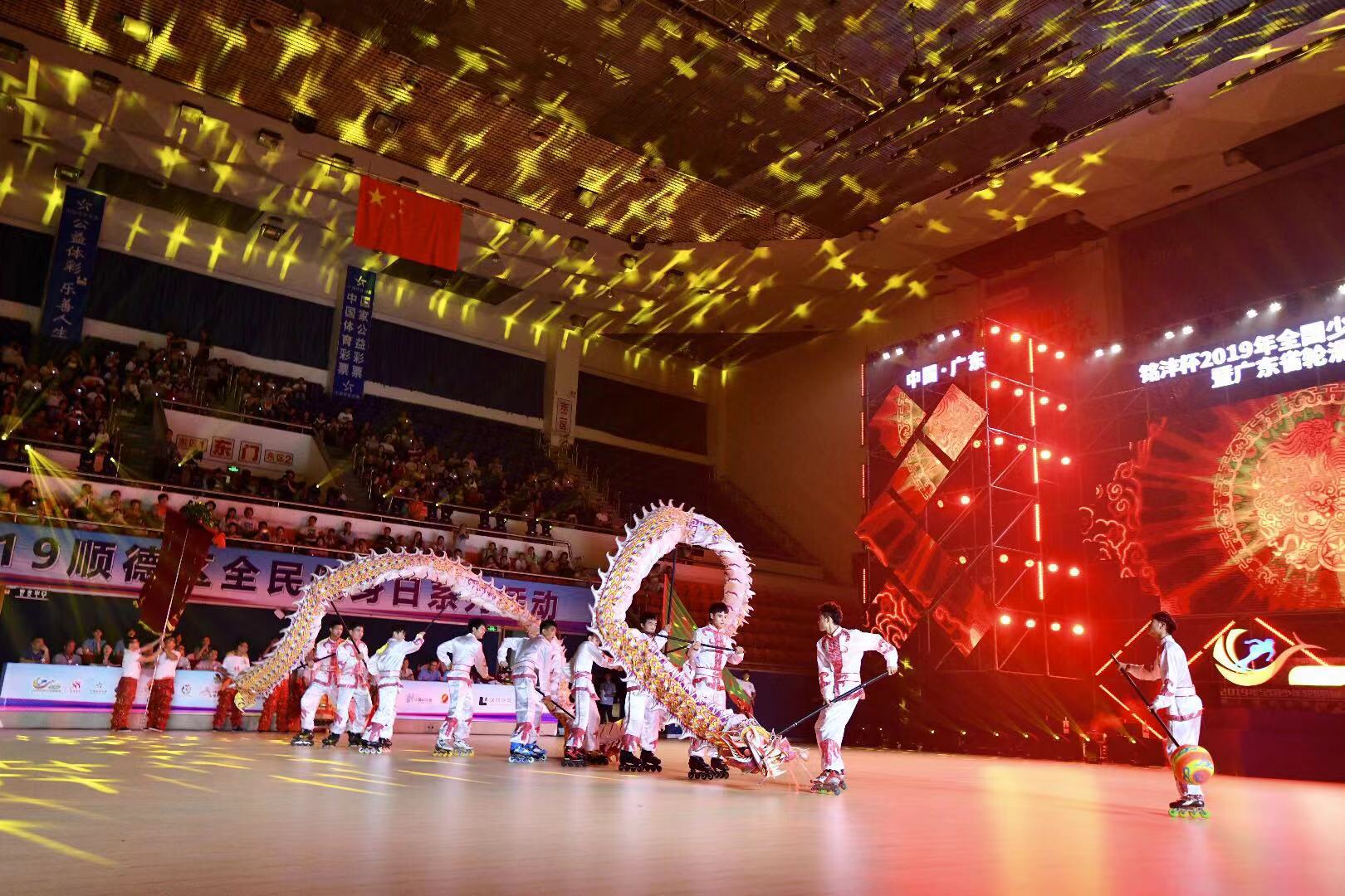 開(kāi)幕式以“舞與輪‘彼’”為主題,通過(guò)舞蹈與輪滑的融合,各自展現(xiàn)輪滑技能及輪舞之美?!氨恕眲t表達(dá)出全國(guó)各地參賽選手齊聚大良,相互交流、無(wú)分彼此、相聚一家親的美好寓意。