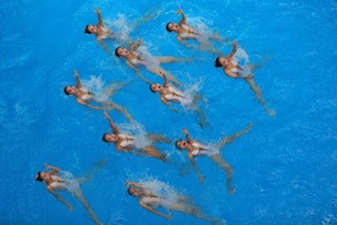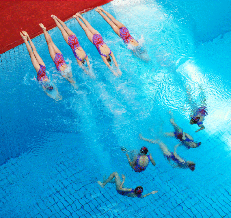 花樣游泳是一項具有藝術(shù)性的優(yōu)雅的體育運動,它也需要力量和技巧,需要許多年不斷的訓(xùn)練來掌握。有十個裁判關(guān)注她們的每一個動作,運動員必須做出許多組推舉、旋轉(zhuǎn)、彎曲,所有這些動作都不能借助于池底的地面,還要在不呼吸的情況下作伸展,常規(guī)動作要持續(xù)五分鐘,同時進行表演,而即使在最緊張的常規(guī)動作要求里,水上芭蕾運動員們還要努力保持輕松的形象。
