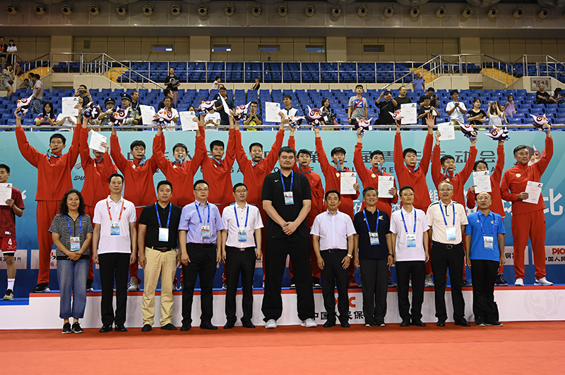 賽后頒獎(jiǎng)儀式,興奮的深圳新世紀(jì)隊(duì)員、教練員手牽手躍上最高領(lǐng)獎(jiǎng)臺(tái),全場(chǎng)掌聲雷動(dòng)。中國(guó)籃球協(xié)會(huì)主席姚明親自為小伙子們頒發(fā)金牌并合影留念,廣東省體育局副局長(zhǎng)許建平亦到場(chǎng)向球隊(duì)道賀。