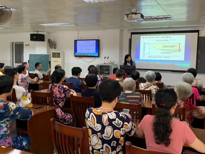 除了開展體質測試外,本次活動還邀請了廣州大學體育學院的李爽教授為老年人進行了題為“運動與健康”的講座,李教授結合老年人生活行為特征及普遍存在的健康問題,把一些慢病預防的方法,以及如何通過科學運動來解決一些健康問題進行了生動的講解。課后,很多人向李教授請教自身健康問題的解決方法,并留下李教授的聯(lián)系方式,希望與李教授加強交流。