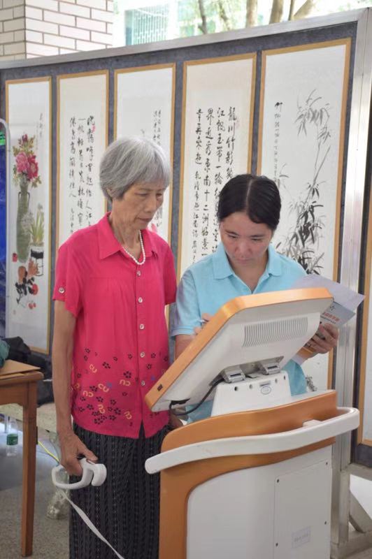 14日上午國民體質監(jiān)測車開進潮州市老年人大學,為廣大老年人開展體質測試及健身指導服務。針對老年人的體質健康狀況,省國民體質監(jiān)測中心特意為老年人安排了身體成分、骨密度、心血管機能檢測、糖尿病篩查等項目的檢測服務。除了開展檢測服務外,萬里行的專家團隊還根據(jù)檢測結果為老年人開具了個性化的運動處方,指導他們如何針對自己存在的問題用科學的鍛煉方式進行改善和預防。