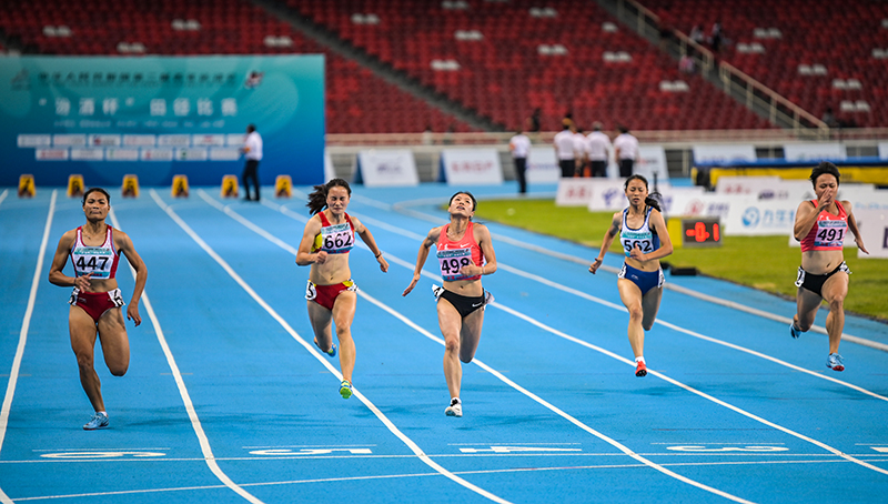 嚴(yán)海玲(左四)沖線瞬間