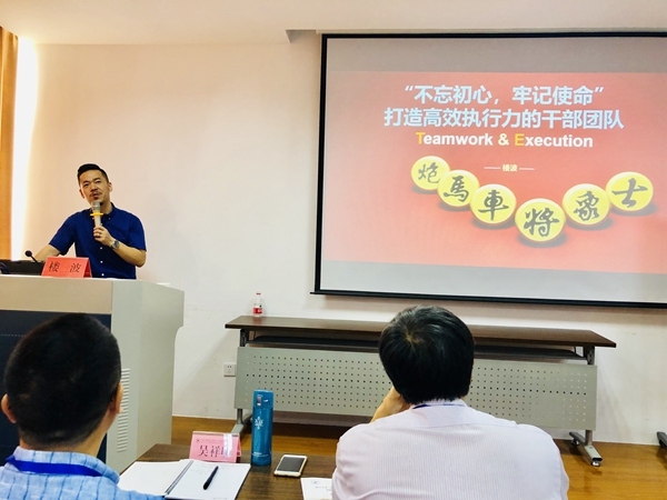 開班第一課由杭州嘜思文化傳播有限公司樓波董事長開講。樓老師貫穿著“不忘初心、牢記使命”的主題,通過“團隊”的解讀、唐僧團隊的角色分析、全班笑一笑小測驗、一條短信的處理方式、修改地名、曾國藩等典故或游戲與大家分享了高效團隊執(zhí)行力“思想決定態(tài)度”、“態(tài)度決定行為”、“行為影響結(jié)果”這三個要素,寓教于樂、深入淺出、旁征博引地與大家共同探討了團隊管理中守初心、擔使命、抓落實的智慧和藝術(shù),讓大家受益匪淺。