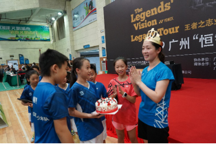 在比賽激烈進(jìn)行的同時(shí),前世界冠軍張亞雯也來(lái)到現(xiàn)場(chǎng)。退役后一直致力于青少年羽毛球培訓(xùn)的張亞雯在現(xiàn)場(chǎng)看到了那么多的小選手倍感親切?!皬V州的小選手羽毛球水平都非常高,這里的羽毛球氛圍也特別好?!睆垇嗹┱f(shuō)道。而對(duì)于小選手,張亞雯也表示:“希望你們能一直堅(jiān)持打羽毛球,成為未來(lái)的世界冠軍?!爆F(xiàn)場(chǎng)張亞雯為小選手們進(jìn)行了教學(xué)、練習(xí)等互動(dòng),而小選手們也給張亞雯帶來(lái)了一個(gè)驚喜。原來(lái)9月9日是張亞雯生日,活動(dòng)結(jié)束小選手們捧著蛋糕給張亞雯慶生,張亞雯也是非常驚喜,她表示在這里過(guò)了一個(gè)非常特別的生日。