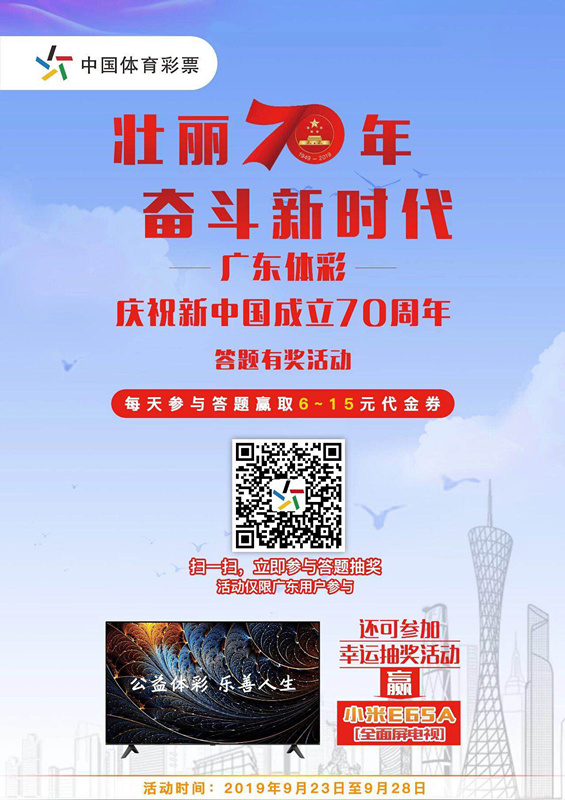 廣東體彩重磅推出“慶祝新中國(guó)成立70周年”答題有獎(jiǎng)活動(dòng),目前累計(jì)5萬(wàn)多人參與該活動(dòng)!精彩繼續(xù),大家繼續(xù)來(lái)參加吧!