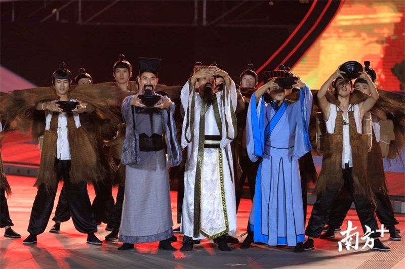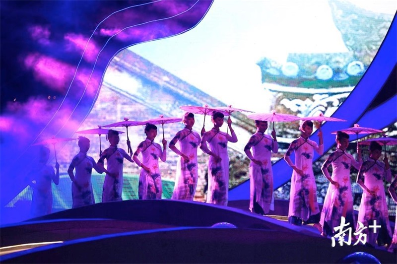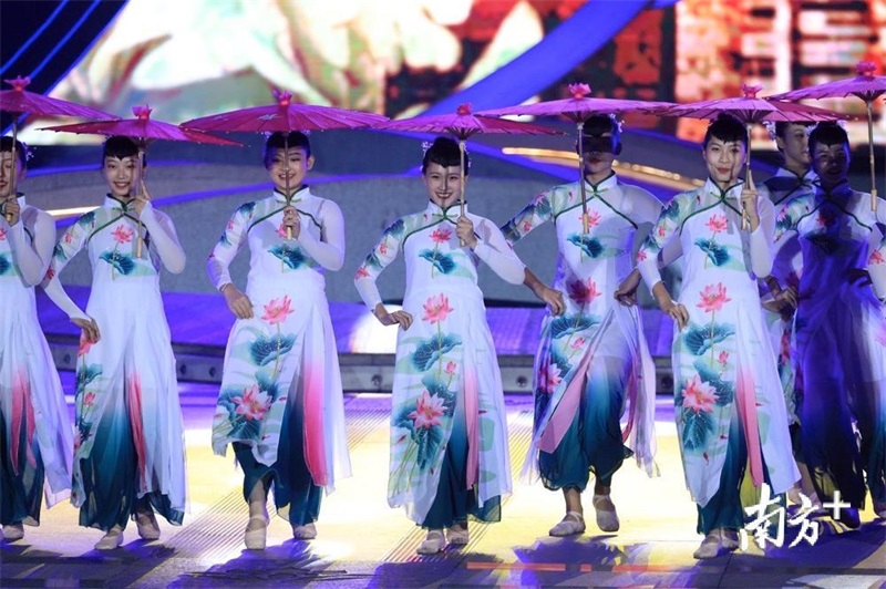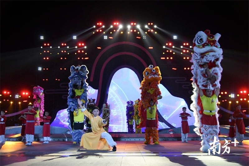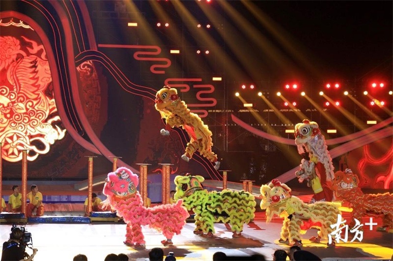 接著,一波具有中國特色和嶺南文化的文藝展演開始,在舞臺炫目的華燈下,《佛山華光 古今輝映》《嶺南文化 驛道綿延》《龍騰獅舞 敢為人先》《走在前列 樵見世界》等精彩表演。